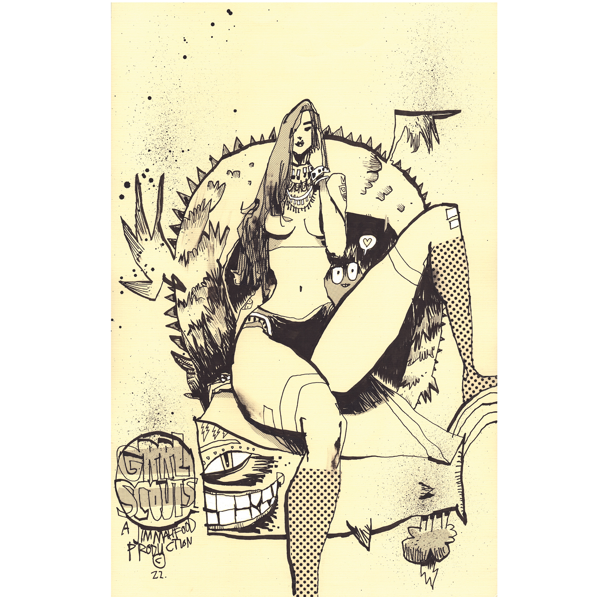 Pen & ink w zip-a-tone on ivory paper. 11×17.