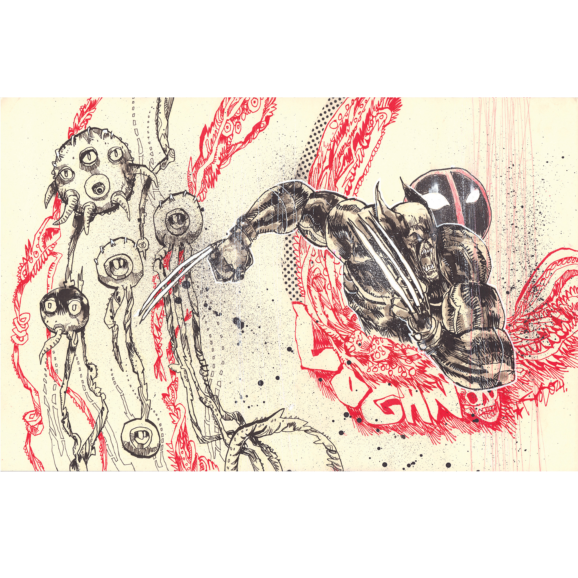 Pen & Ink with zip-a-tone on ivory paper. 11×17.