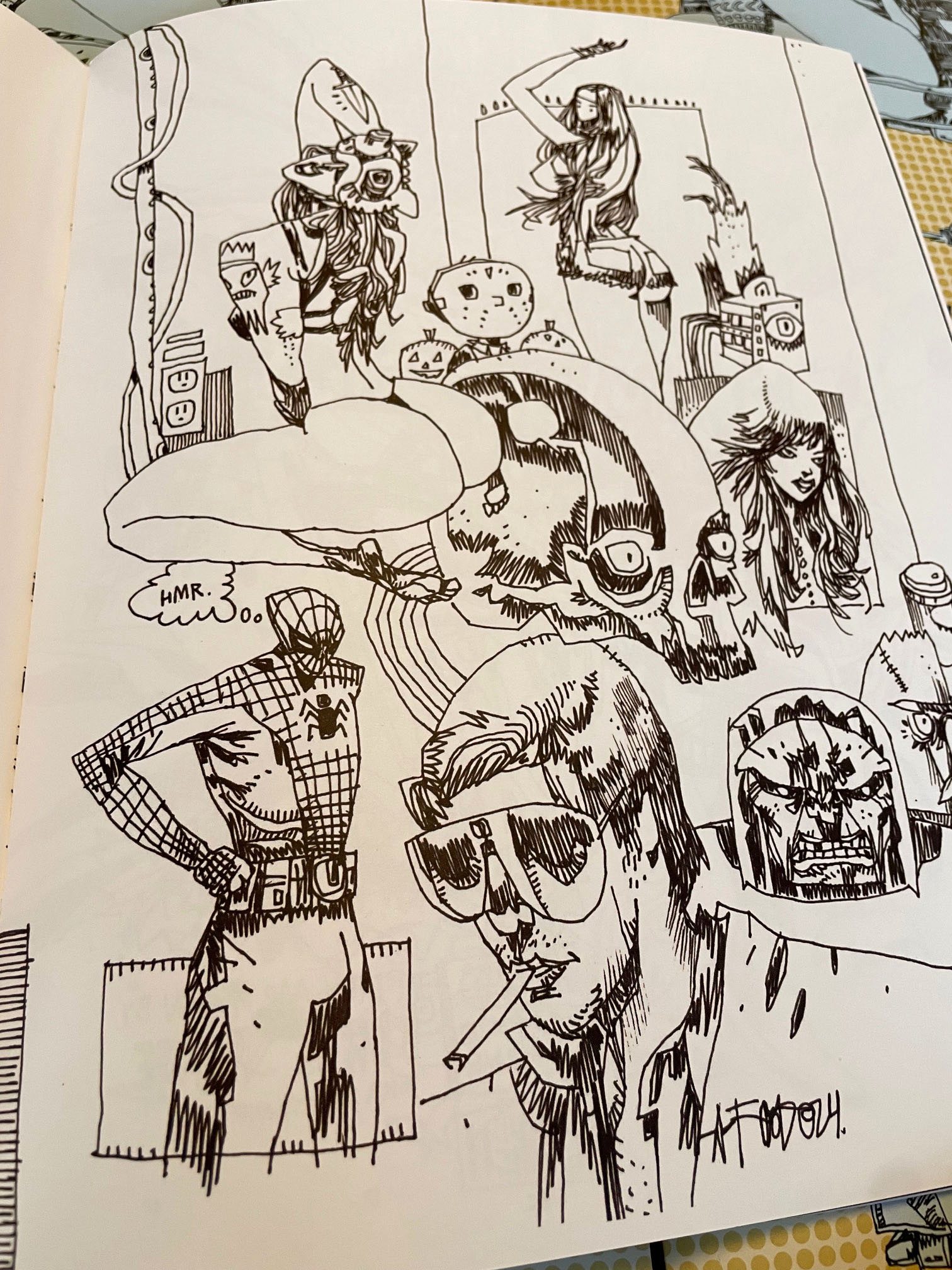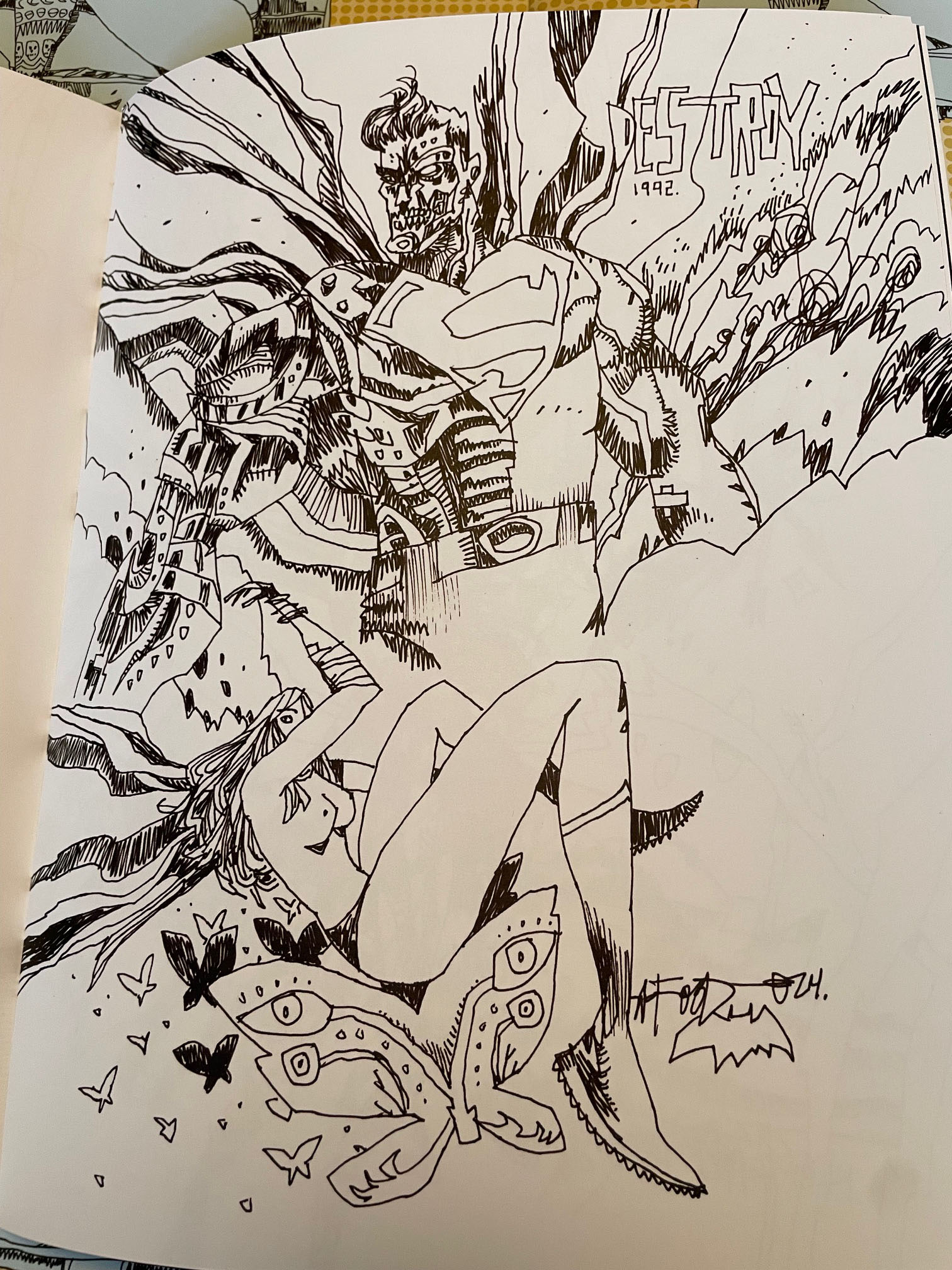 Jim’s brand-new art book publication is here! Rejoice! Collecting the best of his most recent ballpoint pen sketchbook material. 48 pages, packed to the gills with mind-bending, ultra-fresh, sexy fun drawings! Measures 8.5 x11 (magazine format). Each book comes signed with an original ballpoint drawing done on the back cover. Includes bonus sticker!
